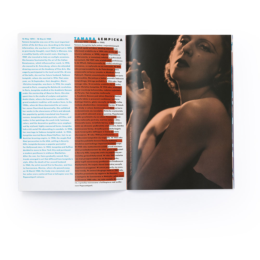 In Rafaela III (Marta), the model poses in a theatrical wig, which facilitates interpreting her character as anchored in drag and queer culture. Marta is surrounded by fabrics she uses during performances. This is also a reference to the ongoing quest to reclaim the queer aspect of Łempicka’s works—Rafaëla, the heroine of the presented sketches, was one of the painter’s lovers.