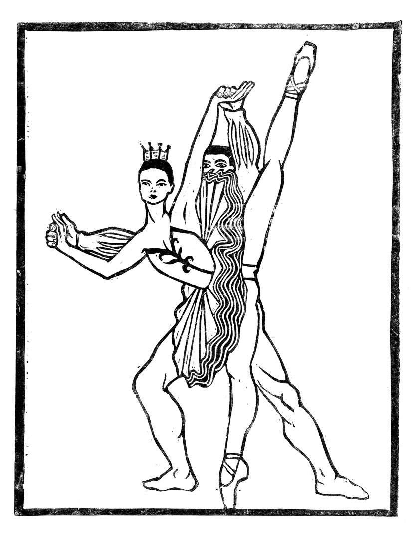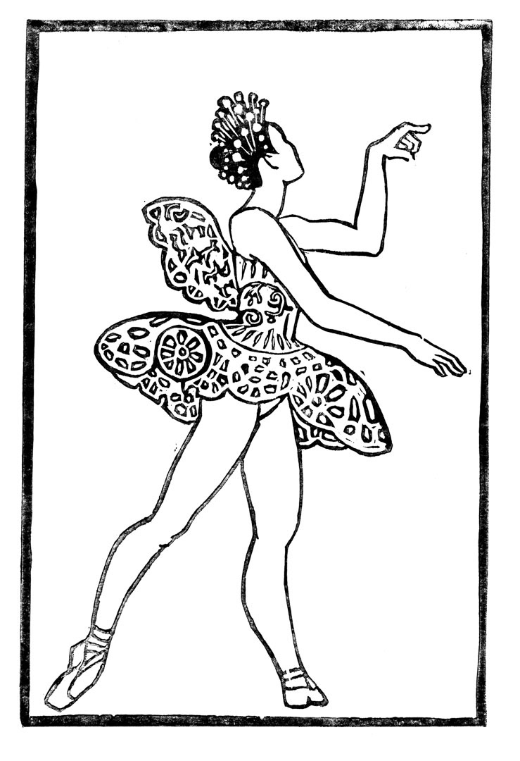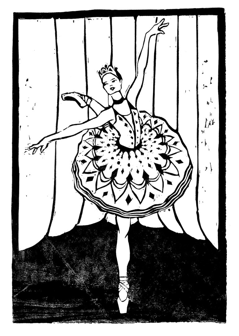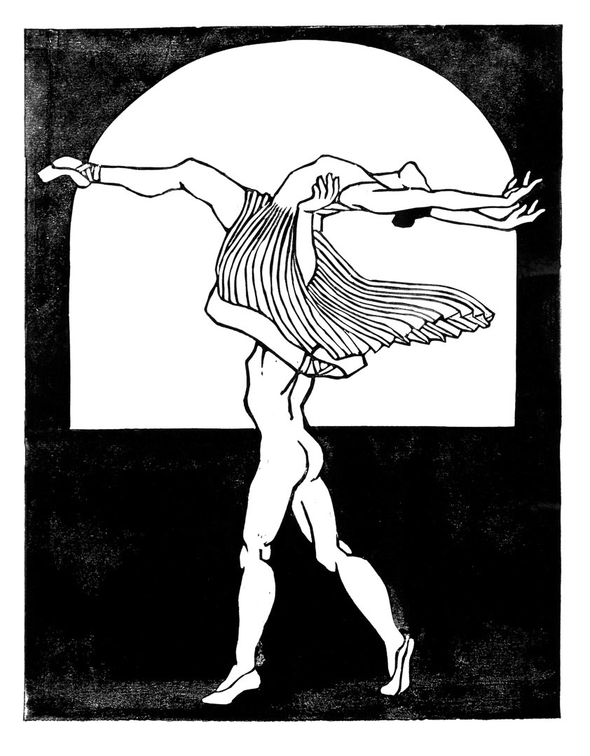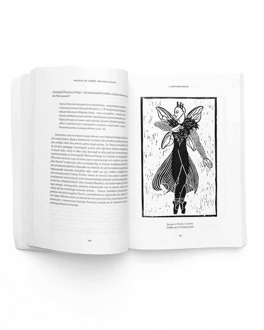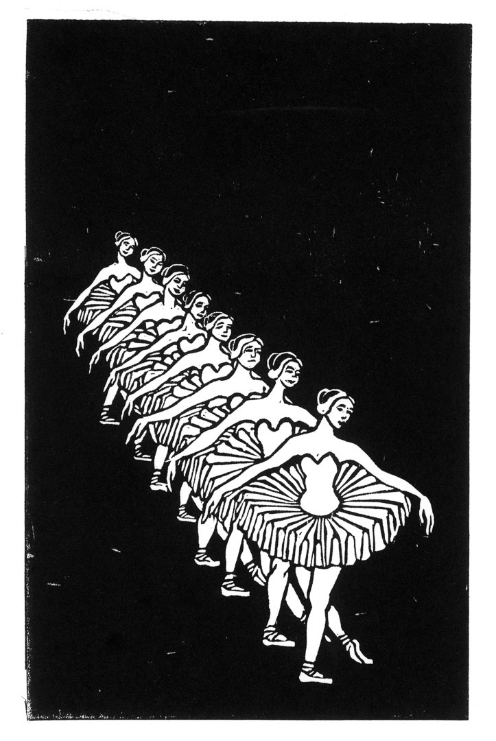 Ilustracje wykonane zostały w technice linorytu. Tradycyjna technika druku artystycznego koresponduje z techniką tańca klasycznego poprzez fizyczną pracę z oporną materią jaką jest zarówno ciało, jak i matryca.