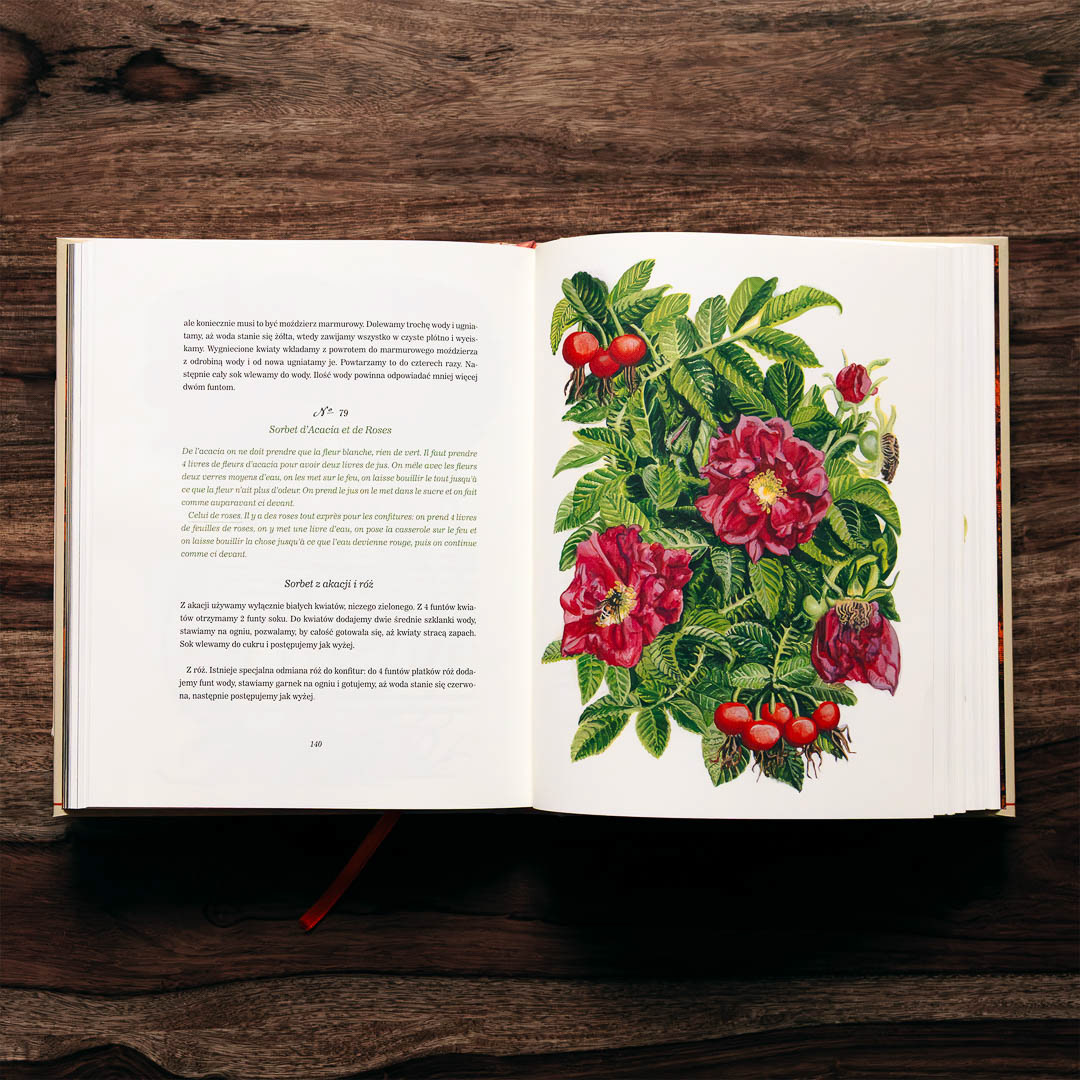 Jest w nim i przepych – babka, na którą potrzeba 2 litry żółtek, i zagadki – tajemniczy napój z 200 kwiatów nenufaru. Są zmagania – recepty na gojenie ran i walkę z cholerą, i zwykłe życie – sprawdzony sposób na budowanie lodowni, pranie kolorowych tkanin i czyszczenie okien. A także porady dotyczące projektowania ogrodu i wiele innych smaczków!