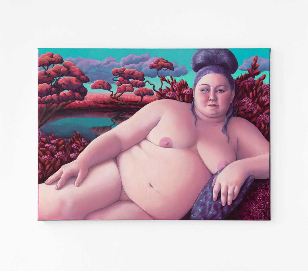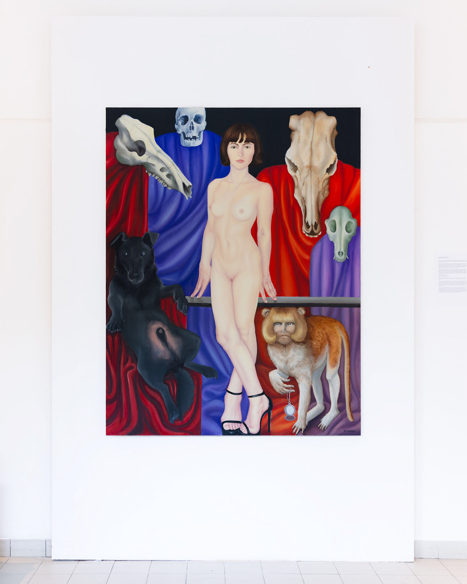 Sfinks / Sphinx, akryl na płótnie, 120 x 160 cm, 2023, widok wystawy ON(a) Transcendencje, Galeria WL4 Mleczny Piotr, Gdańsk 2023