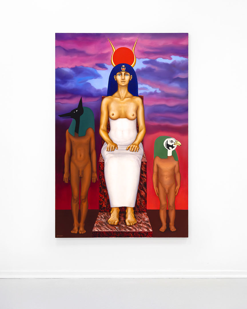 Bogini Izyda z Synami / Goddes Isis with Sons , olej na płótnie, 200 x 130 cm, 2025 , widok wystawy "The Great Round", Annika Nuttall Gallery, Aarhus, Dania, 2025